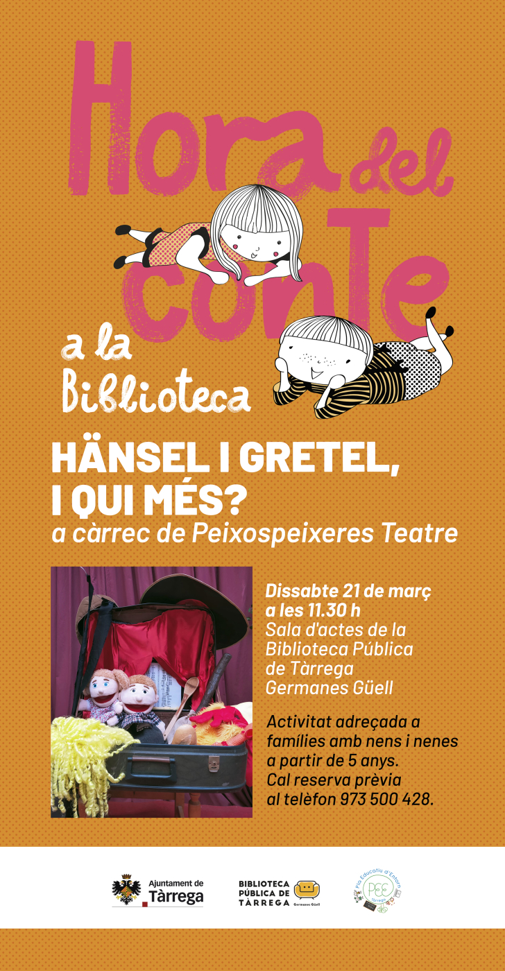 Activitat familiar i gratuïta per a infants a partir de 5 anys. Reserva de places al 973 500 428 o biblioteca@tarrega.cat